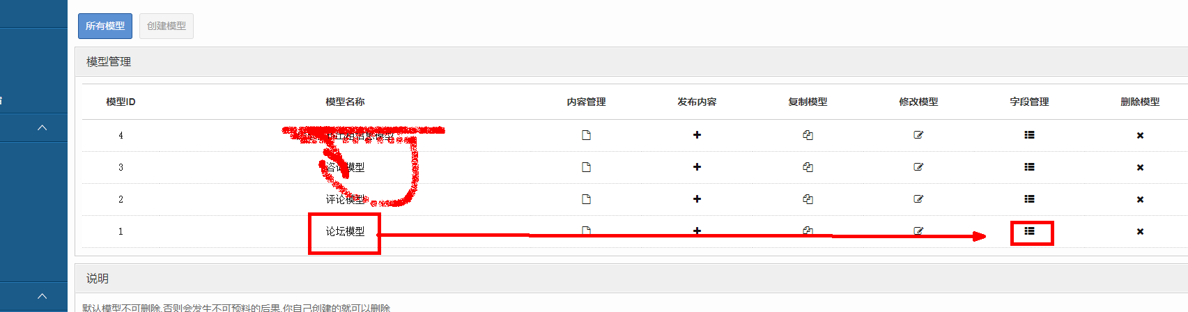 后台的模型配置如下: